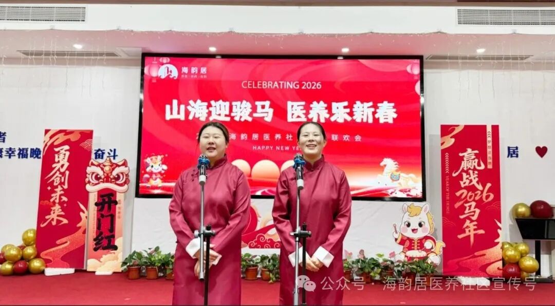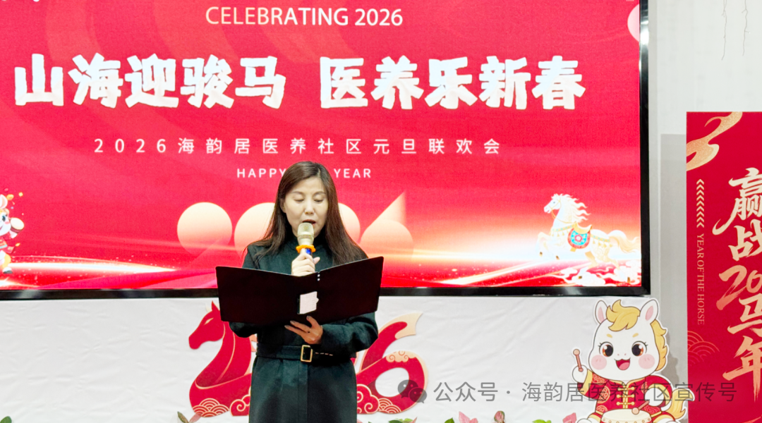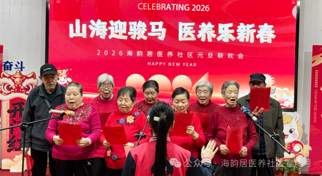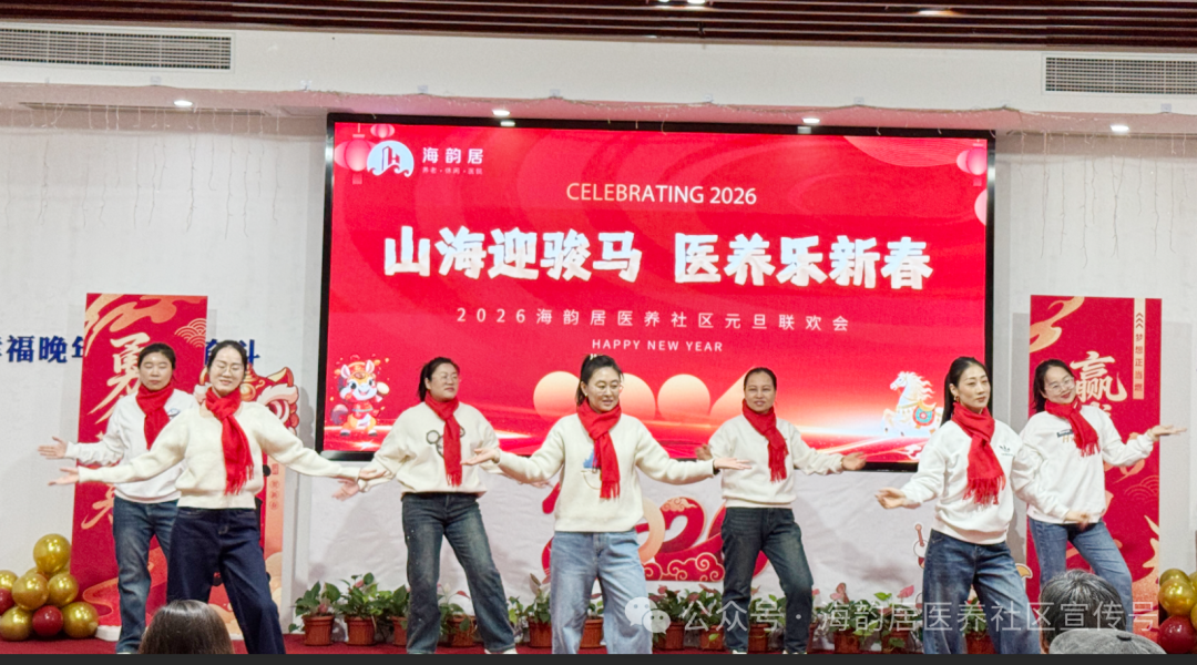 冬阳暖照,笑语盈庭!12月30日,海韵居医养社区“山海迎骏马,医养乐新春”2026年元旦联欢会在多媒体活动室温馨启幕。在园长者与全体员工齐聚一堂,用歌声、舞蹈与欢笑,共赴一场温暖治愈的新年之约~